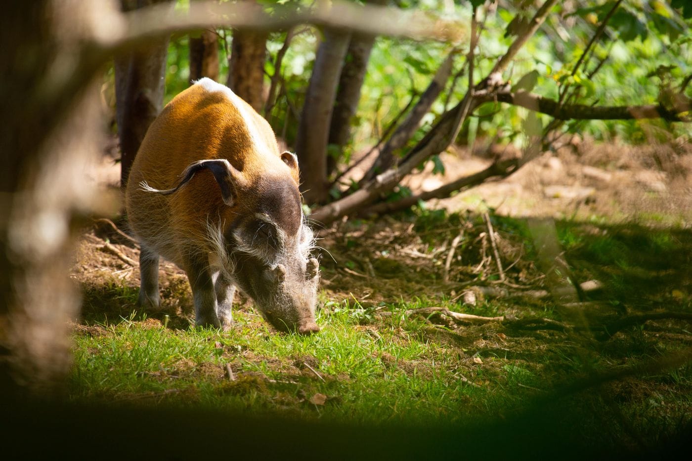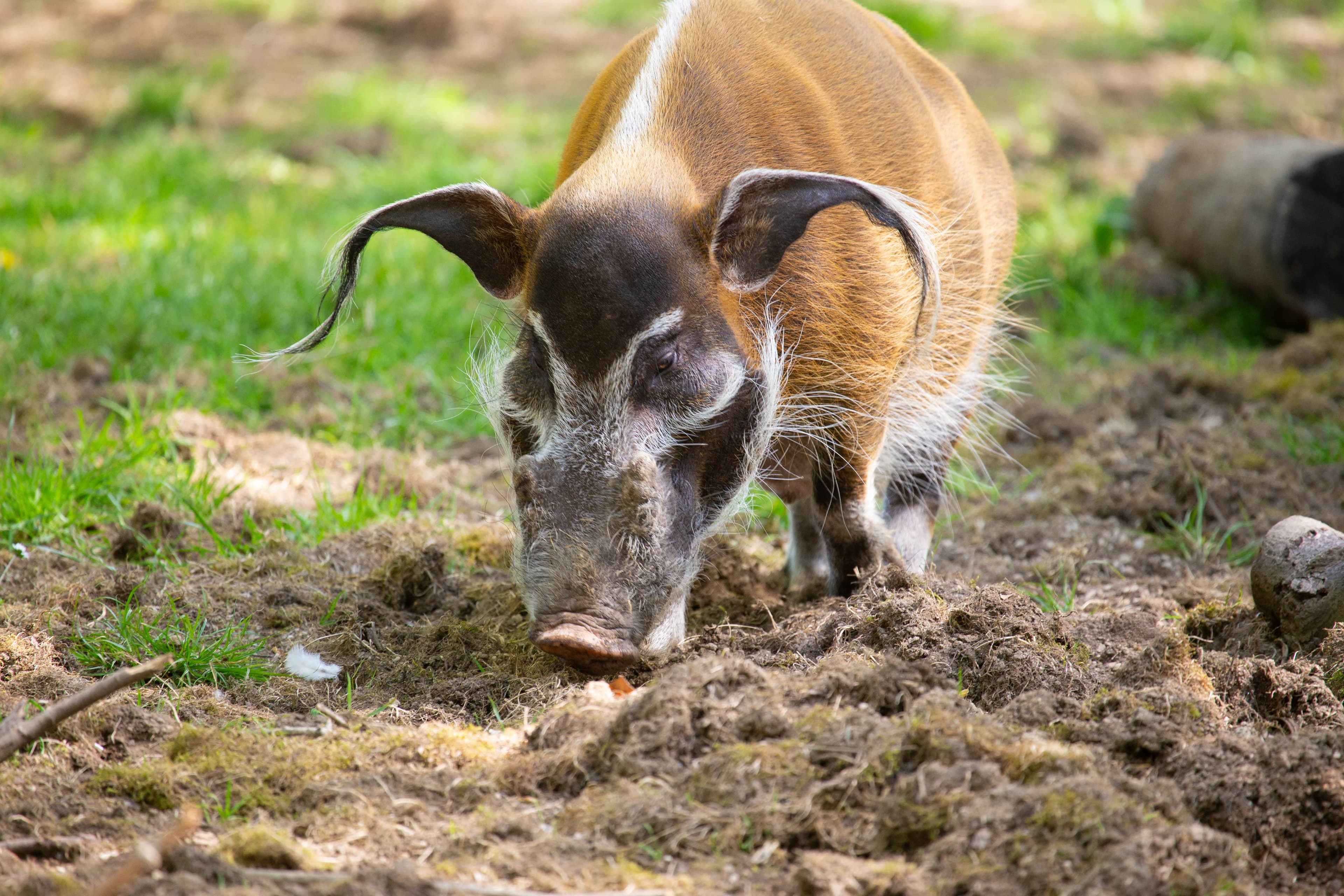 Our red river hogs have a large habitat at Bristol Zoo Project with lots of shrubbery and tree roots to rummage around in and provide natural enrichment.